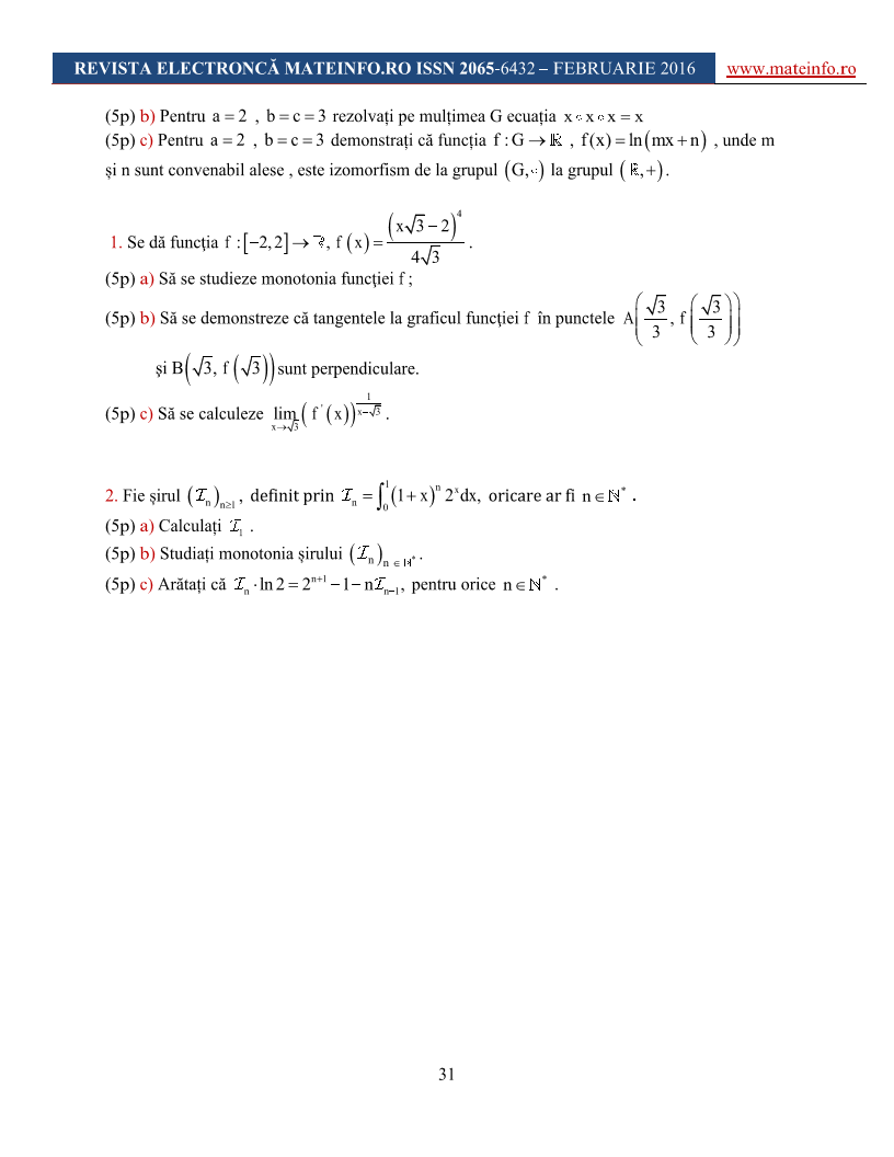 Revista Electronică Mateinfo ro Februarie 2016 (vezi pag.30)