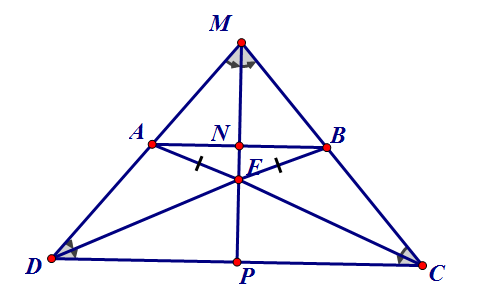 \(\vartriangle AMN\equiv \vartriangle BNM(C.C.)\Rightarrow \vartriangle AMB\,isoscel\,\Rightarrow \,(MN\,bis.\,\sphericalangle M\)