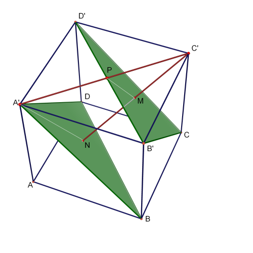 Confirm bănuiala ta, dar nu e uşor de demonstrat. Observăm că planul (A'BD) este paralel cu planul (B'D'C), ceea ce rezultă din