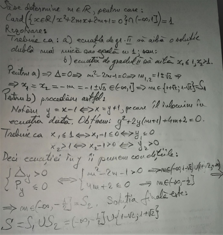 \[\left \{ x\in R/x^2+2mx+2m+1=0{^{}} \right \}\cap (-\infty ,1]\]are un singur element este...